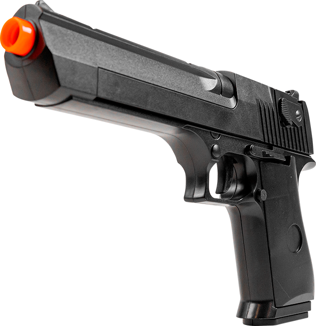 A Pistola Airsoft de Mola Vigor Desert Eagle V30 6 mm é uma réplica de ação spring (mola) com visual inspirado no icônico modelo Desert Eagle, oferecendo dimensões avantajadas, acabamento agressivo e boa ergonomia. De disparo manual a cada tiro, é indicada para uso recreativo supervisionado.
